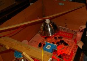 Chickens are a good place to start. They are small, require a small investment and a quick turnaround. We started with layers we ordered from a hatchery and, boy, were those city postal workers surprised when the package came through. I built a brooder out of a 4×8 sheet of plywood saved after a home remodel job sitting on another sheet of plywood I got from my neighbor’s trash. Yeah, we didn’t fit in the suburbs. Please notice the heat lamp hanging from a scrap strip of pine board. Not the best idea but chickens seem to manage in spite of owner inexperience/foolishness/incompetence.