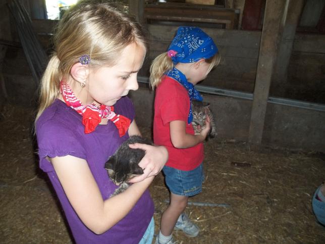 One of our rabbits kindled yesterday.  We finally found the kittens in the barn…and my oldest son found out how protective mama cats can be.