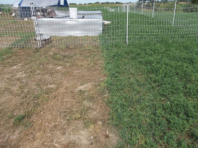 Recovery is slower in the absence of rain…but it does recover.  I’m have raised 4500 pounds of chicken on this field and two cuttings of alfalfa…and it’s not even July yet.  But then what?  I haul goat and cow manure out of the shed to spread it out on the field again?  I compost the chicken guts and bring them back out to the field?  Isn’t there something better I could be doing?