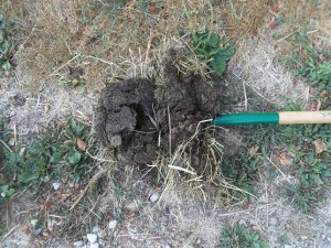 It’s cow manure, aged to perfection (about 2 days old). Cow manure has lots of interesting things in it for chickens to scratch out. Normally, the chickens find cow manure each time I move them to new pasture but during the heat wave the birds are stuck in the front yard. I’m bringing them cow manure. It should also add fertility to the yard. Not a bad thing.