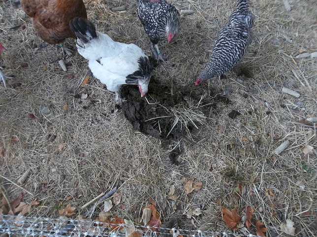 I don’t really know what they are finding but they are doing more than just digging. Cow manure has many things that are helpful to a chicken’s digestion. Now, don’t gross out. Chickens aren’t people. This is a very normal thing they are doing. Birds follow herbivores in nature doing this very work.