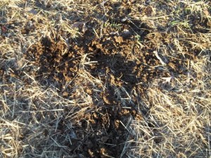 In the early spring when there are large flocks of red-winged black birds roosting in the trees…so many it’s hard to have a conversation outside, the cow pies get decimated.