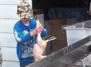 We do not force our kids to participate. It’s kinda gross and we are taking a life. If they don’t want to participate we don’t push. They are all out there voluntarily so we try to find fun things to do together. For instance, when we kill the last bird we all stop to do the chicken dance. Good times.
