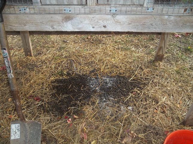 To keep the worms from being burned I drilled a couple of holes in the bottom of a bucket, filled the bucket with rabbit manure then poured a bucket of water into it.  That should start the heating process pretty quickly.  Once it cools I add it to a new tray or fill in spaces in older trays.