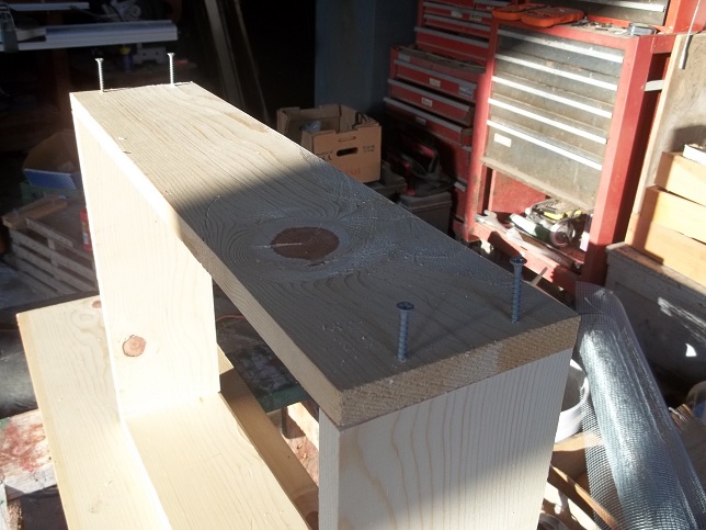 Screw the longer boards to the shorter boards.  The result will be a box measuring 24×18.  That’s big enough to hold some compost and generate a little heat but small enough that you can pick it up and carry it around.