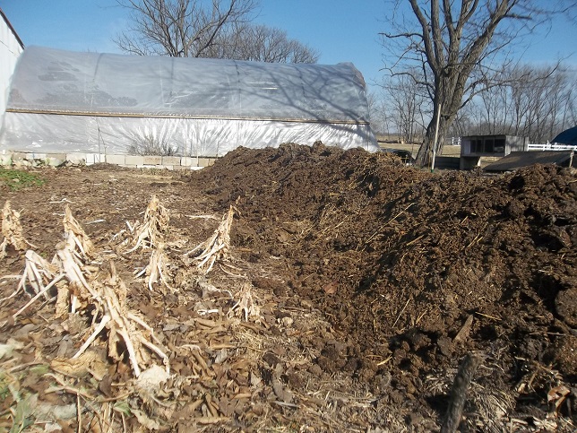 I spent the winter gathering horse, pig, rabbit and chicken manure…all mixed with sawdust and straw.  We turned that pile a couple of times and watched the temperature vary.