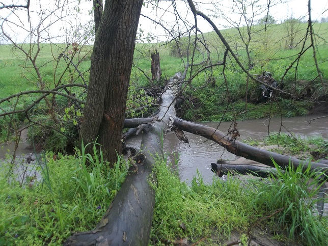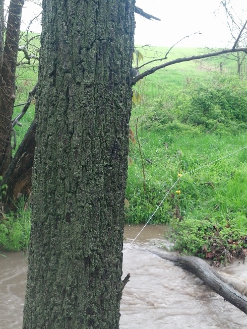 The creek attempted to claim our fencing but we got it untangled, recovered our posts and moved everything up hill. I had to cross the creek on a fallen walnut tree but we got the job done. The creek in the picture is down two feet from where it was last night. The current flood emphasized the need for me to keep fallen branches cleaned up down there as they tangled up our fencing and clogged up the gate that keeps the cows in where the creek hits our property line. I say creek but it’s not a creek. It’s the branch. I know. City kid.
