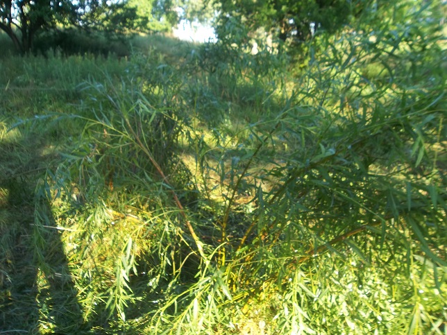 WillowBack toward the house the steep, south-facing slope is always a dry, hot area.  I don’t know if you can see but there are a number of cow paths cut on countour around the face of the hill.  That added compaction makes it harder to get forage established here…keeping things dry.