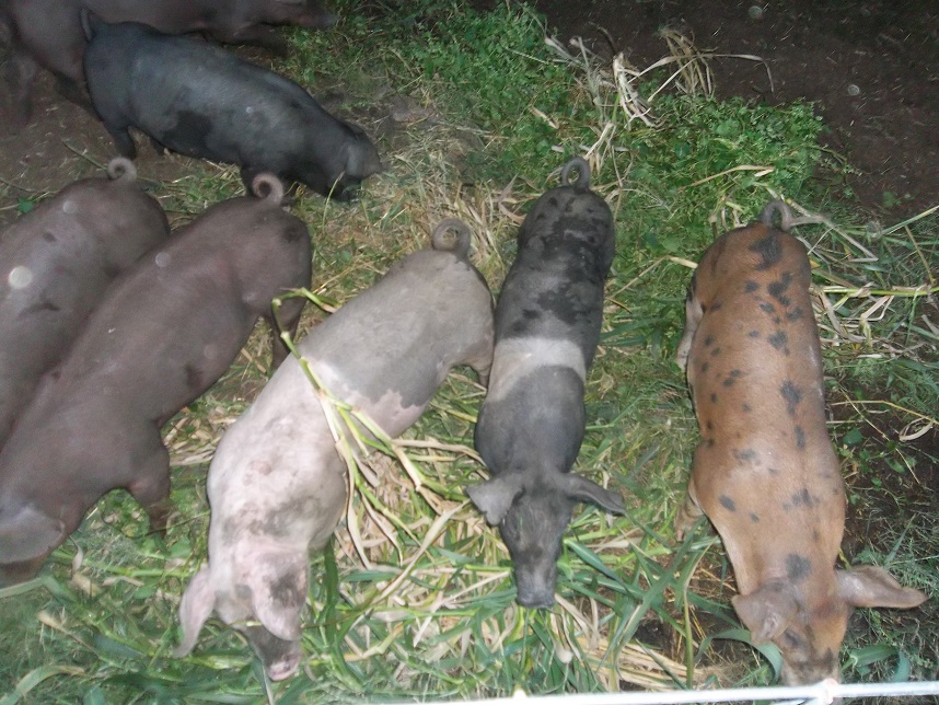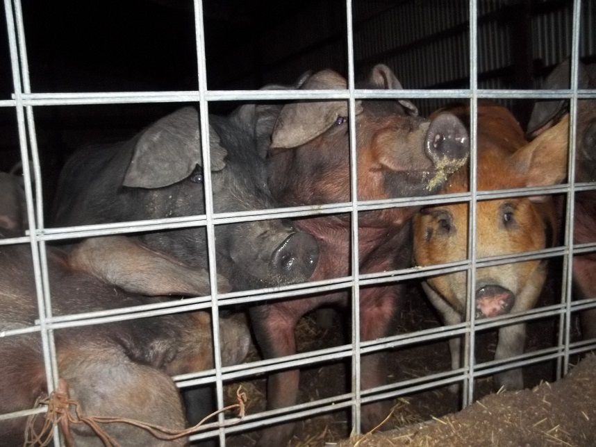 Mike doesn’t appear to advertise. Mike vaccinates for tetanus but that’s about it. I buy them castrated (my choice) but none of his pigs have their tails docked. Because of the deep bedding the pigs have plenty to do so cannibalism isn’t much of a problem. Long, wagging pig tails are very entertaining. I prefer to buy barrows (grow out faster) but I also buy a couple of gilts as some customers specifically request them.