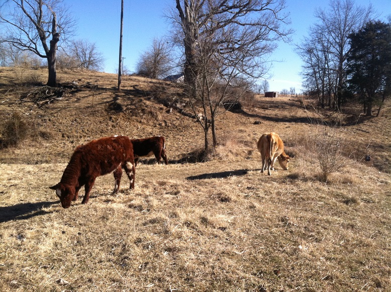 East and South of the house lies the remains of pasture that the cows passed over in October. Forages they just elected to skip. Lots of fescue. There is a fair amount of grass there but it is only marginal in quality…at best. I am offering large grazing areas and two whole bales of hay each day.