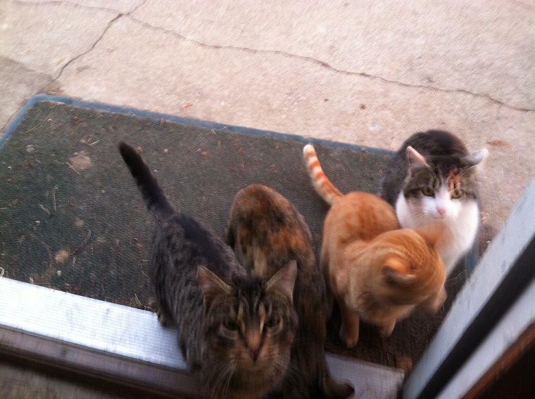 I also have the cats guarding the door, except my problem is a set at the back door and another at the front. Too many cats.