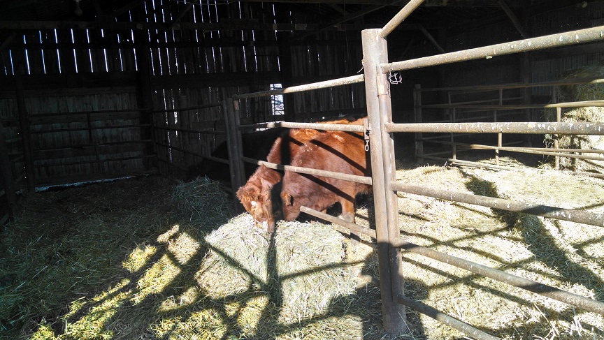 So now the calves are in jail. They are under shelter on warm, dry bedding with plenty of fresh water, kelp, salt, hay and a southern exposure. They seem to be doing well. Once in a while one of them (I haven’t paid much attention which) will call out to mom. More frequently moms will call out to calves. I suspect they want to be indoors with all they can eat hay too.