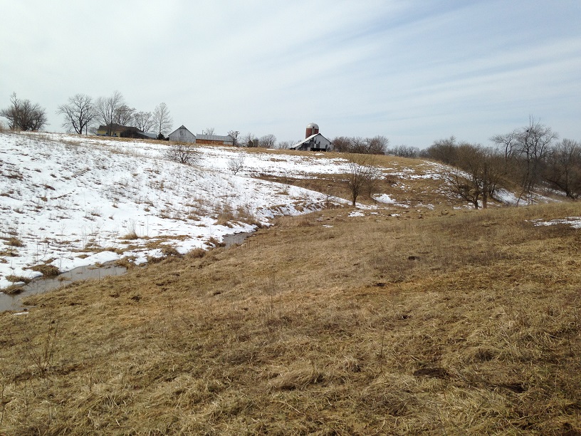 Not all of the pasture is snow-free. The north-facing slopes are still covered.