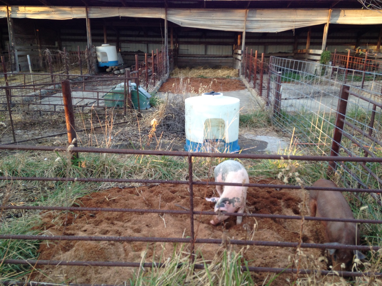 I’m not at all happy about putting pigs on concrete so I try to mitigate the damage I’m doing to my ego by giving them lots of fluffy bedding and piles of sawdust to dig through and manure in (hopefully in that order). I also work to make sure they have fresh, green grass in their current bay. You know…pasture.