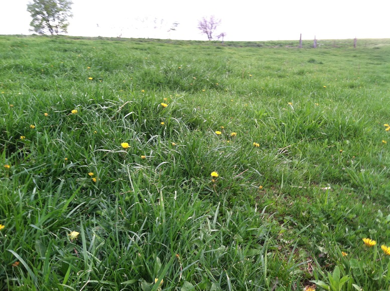 The pasture east of the yellow house should be some of our very best pasture. It’s up on the flat, it’s easy to access and it’s a good soil type. But it just doesn’t grow grass. What grows there is sparse and there is quite a bit of moss, especially on the north-facing slopes. I don’t mind a weedy mess but I do mind the bare spaces. And as I walk the field there are lots of bare spaces.