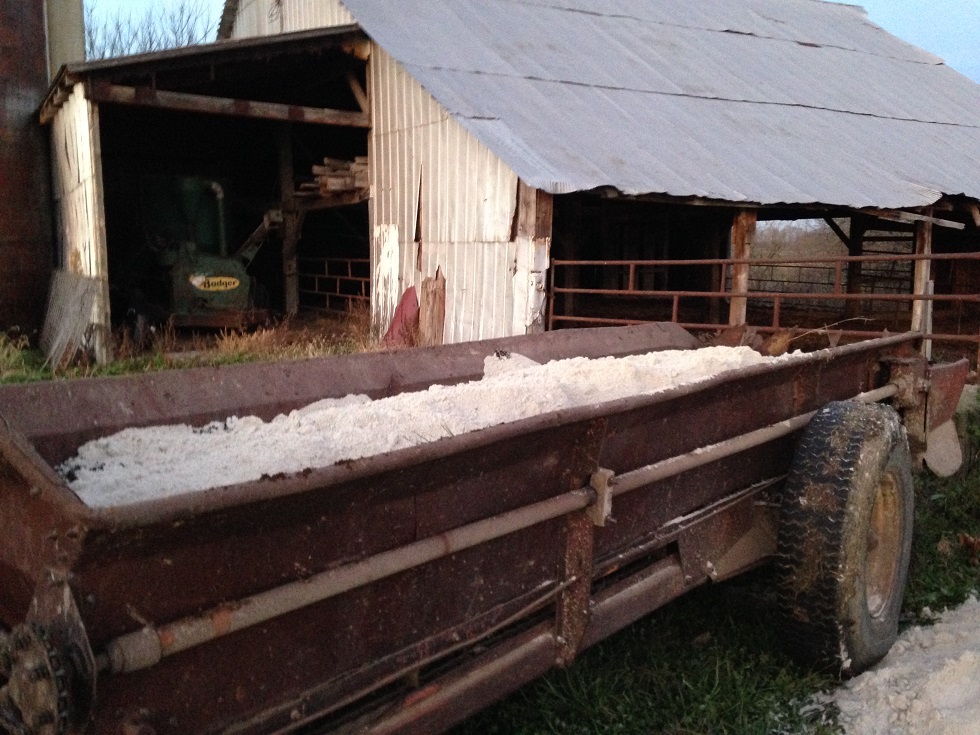 We order a load for our place and a load for the horses every year. This entire load will be spread this winter in the greenhouse under the pigs, rabbits and chickens. We also take any wood chips we can get from the power company and local tree services. And I am overdue to rent a chipper for some brush I have piled up. It all comes in handy, soaking up odors, making animals comfortable and increasing pasture fertility. That represents the entirety of our annual fertilizer bill.
