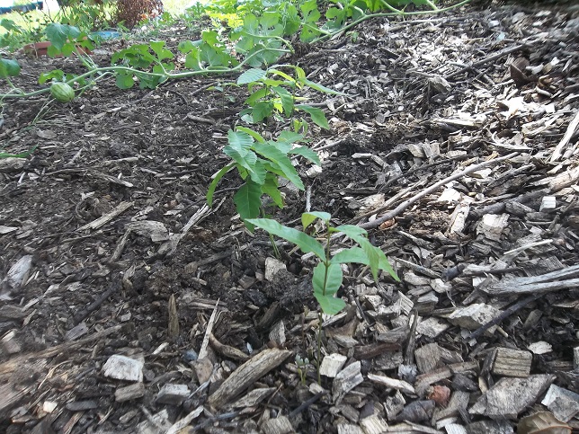 We have a large, old locust tree growing by the garden. Really, it’s not doing well but it still flowers every spring and throws shoots from its root system.
