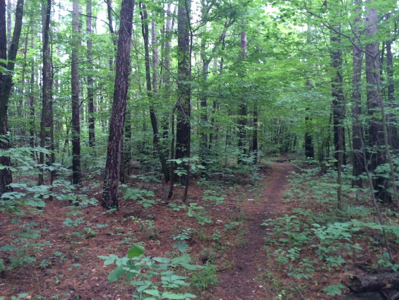 But we soldiered on through. How far could it be? We followed the trail through the tall trees.