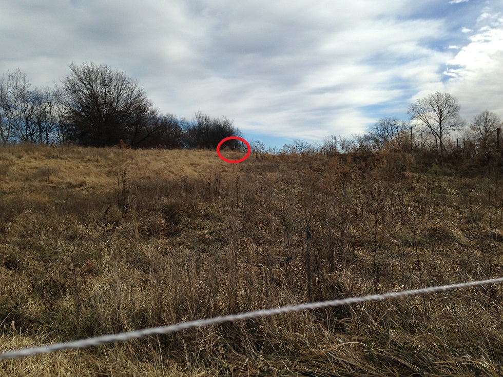 all the way over to here (the clover field we grazed until October). We will do this by grazing from south to north in narrow strips from west to east. Hopefully we’ll have two months worth of grazing here supplemented by a bit of hay cut from the clover field I am standing in.