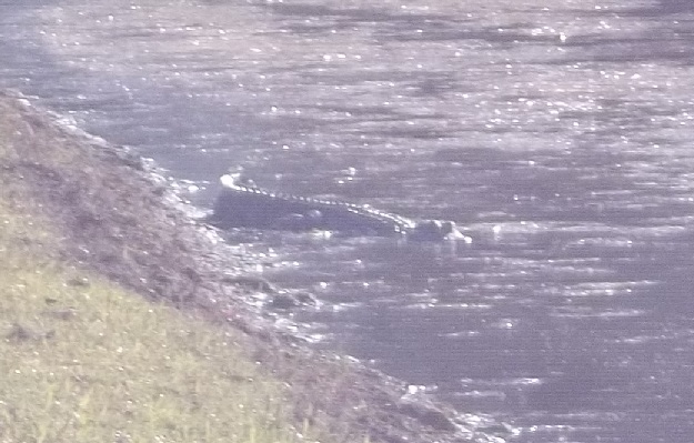 This fella lives in the swampy water hole area across the street from the hotel. Others live in the various other water holes surrounding the hotel…and on out into the community. Gators. I found myself wondering if my electric poultry netting would even bother an alligator…or what I could legally do about it if I found a gator eating my flock. The birds on the shore often just disappear. One second there’s a juvenile sandhill crane. The next second…not even a feather floating in the air.