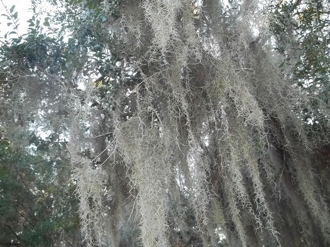There are any number of wetland preserve areas (as if a wetland can express itself when confined to a 30×30 area and surrounded by pavement). There were whole groves of live oaks, pine and pineapple trees. The larger trees were dripping in spanish moss. Our forests are a dense clump of about 100 kinds of trees (most bear edible nuts), multi-flora rose, poison ivy, dewberries, may apples, grape vines, gooseberries, ginseng and abundant fauna that aren’t inclined to eat your leg. I couldn’t identify anything edible in the woods there other than acorns and was always aware of the possibility that the thing that looks like a log in the water to the left may be hungry.