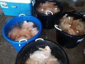 - Give yourself enough time. We can kill 100 birds in about the same time it takes us to clean up from killing any number of birds. Clean up takes longer than you expect. Plan for it. After we clean up we shower, change and begin packaging the birds. Again, this can take more time than you expect at a time when you are already tired.