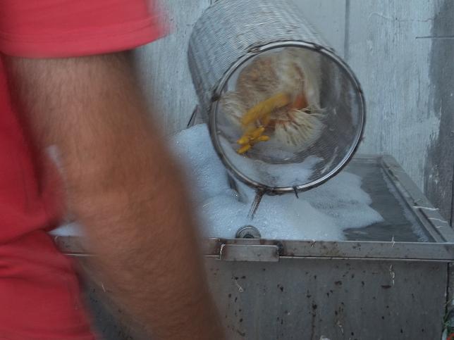 By 1:00 the air temperature had risen enough that the scalder was back on top of its game…but out of propane. I changed tanks, heated some water on the stove to kickstart the process and we dove into the work. We worked at a slow pace as we were tired from processing the day before and finished up 115 birds by 3.