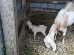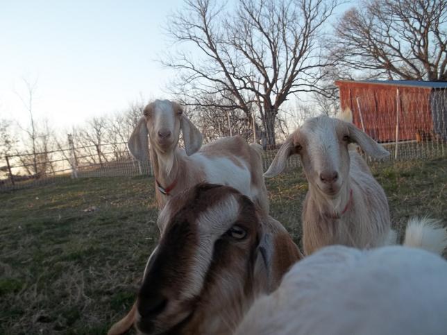 Olive and Sweet Pea are days away from freshening…from kidding…from having babies. We’ll keep a close eye on them as we believe Olive was bred on Dec. 10th and Sweet Pea was bred a few days later. When Olive was carrying quads last year she developed a limp…you would too. So far she’s getting around normally but you can tell she isn’t comfortable laying down.