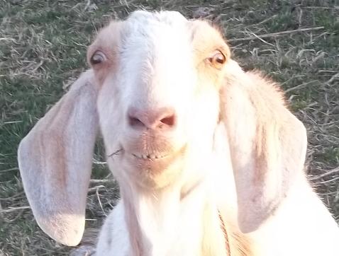Olive arrived with her twins (Sweet Pea and Popeye (Supper)) two summers ago then gave us quadruplets last year. That’s a pretty strong mark against her as it is a trait we want to select against. We were able to keep two of the four. I made an attempt at a family photo but..well, goats are goats. From the back left Olive, Sweet Pea, Pixie and Honey. Honey wanted to eat my pant leg and refused to pose.