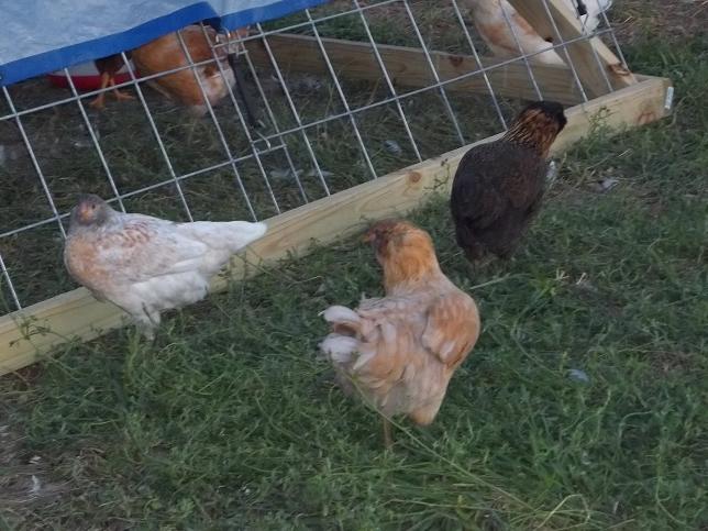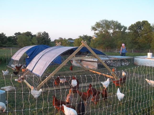 We had a bit of a circus rounding up the pullets in the greenhouse to move them out to pasture. Everybody helped and after a little while, all birds were caught, their wing feathers were clipped and they were packed into crates for the big move to the alfalfa field. Once there, we had a good time convincing these birds they needed to roost in the structure. Oh well. Keeps things interesting.